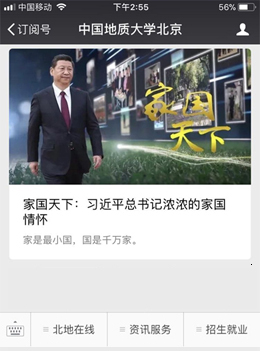 “开云电竞下载官网北京”官方微信由党委宣传部负责内容更新,官微现设“一周要闻”、“解锁地大”、“二十四节气”、“见字如面”等栏目,并开通了北地在线、资讯服务、招生就业等版块,为订阅者提供信息服务。随着新媒体的迅猛发展,我校官方微信已成为推动校园新闻宣传改革与转型的有力引擎,为活跃校园文化生活、提升学校品牌形象起到了积极作用。