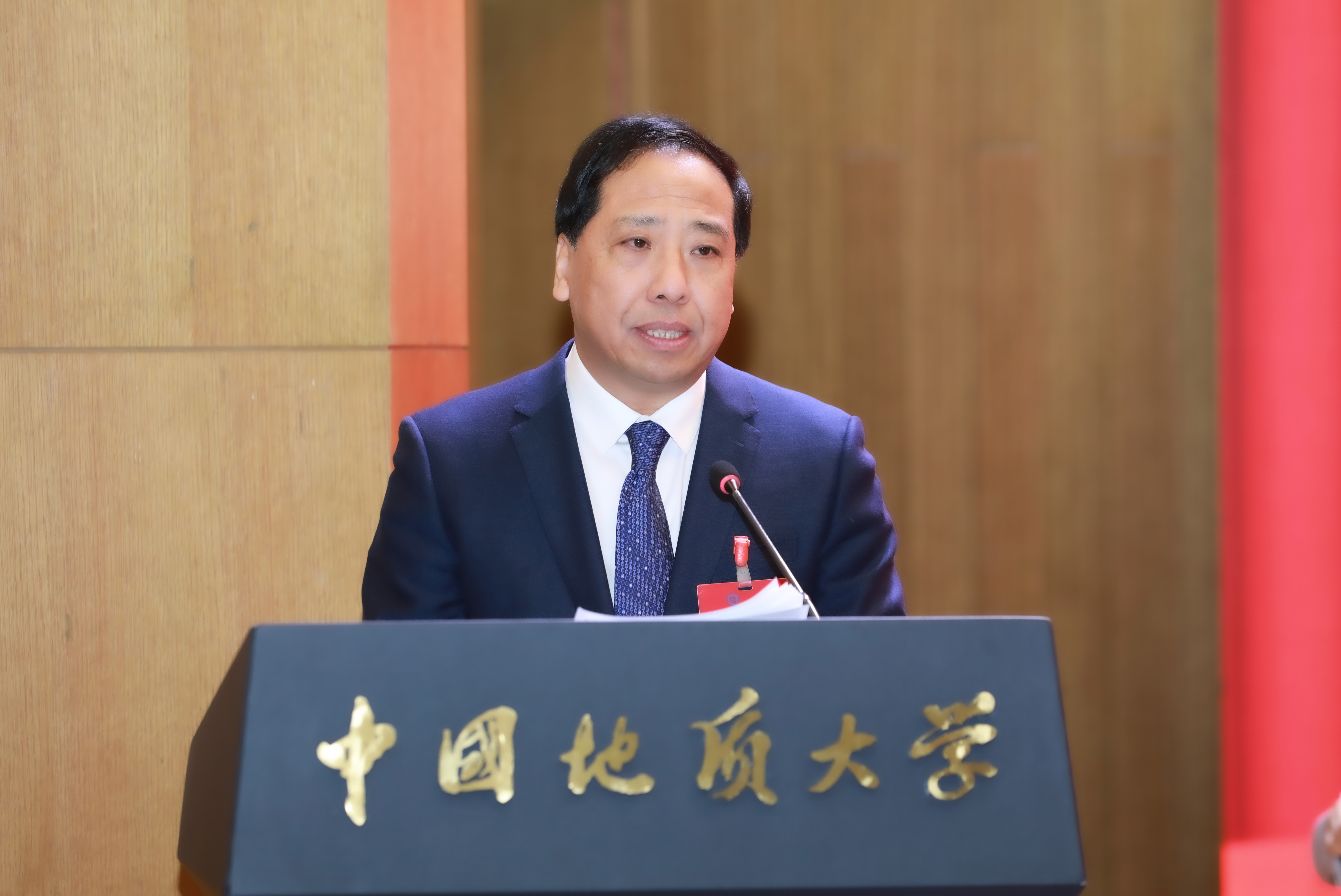 赵志丹表示,五年来,学校办成了过去想办而没有办成的大事,解决了长期想解决而没有解决的难题,这些成绩的取得是全校师生员工攻坚克难、砥砺奋进、无私奉献的结果。未来五年,是学校深入贯彻落实习近平新时代中国特色社会主义思想,服务教育强国建设,落实学校第十二次党代会“1361”工作方略,扎实推进“十五五”建设发展的关键时期。全校上下务必以最大的决心和勇气,锚定早日建成地球科学领域世界一流大学目标,敢于变革,勇于创新,全面加快高质量发展的步伐,推动学校完成重塑性变革,实现跨越式发展。一是深入实施学科专业设置调整优化行动,推动构建与世界一流大学建设目标相匹配的学科专业体系;二是提升拔尖创新人才自主培养质量,推动建设国际一流地学人才重要培育基地;三是厚植优师强师根基,推动建设新时代高水平教师队伍建设与地学人才高地;四是扎实开展有组织科研,着力支撑高水平科技自立自强;五是深入实施人工智能+行动,落实教育数字化战略;六是坚持开放办学,积极加强国内国际合作;七是牢牢把握重大机遇,高标准推进一校三区格局形成;八是做实精细化管理,高质量建设学校综合服务保障体系;九是加强大学文化建设,提高文化软实力。