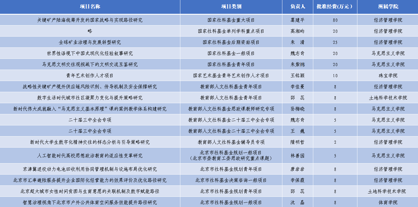 近日,我校在2025年度国家级与省部级社会科学基金项目申报工作中表现突出,共获批国家社科基金、国家艺术基金、教育部人文社科基金、北京市社科基金等项目17项(详见“2025年获批社科基金项目情况一览表”),获资助经费200余万元,获批项目数量与资助经费均创历史新高。