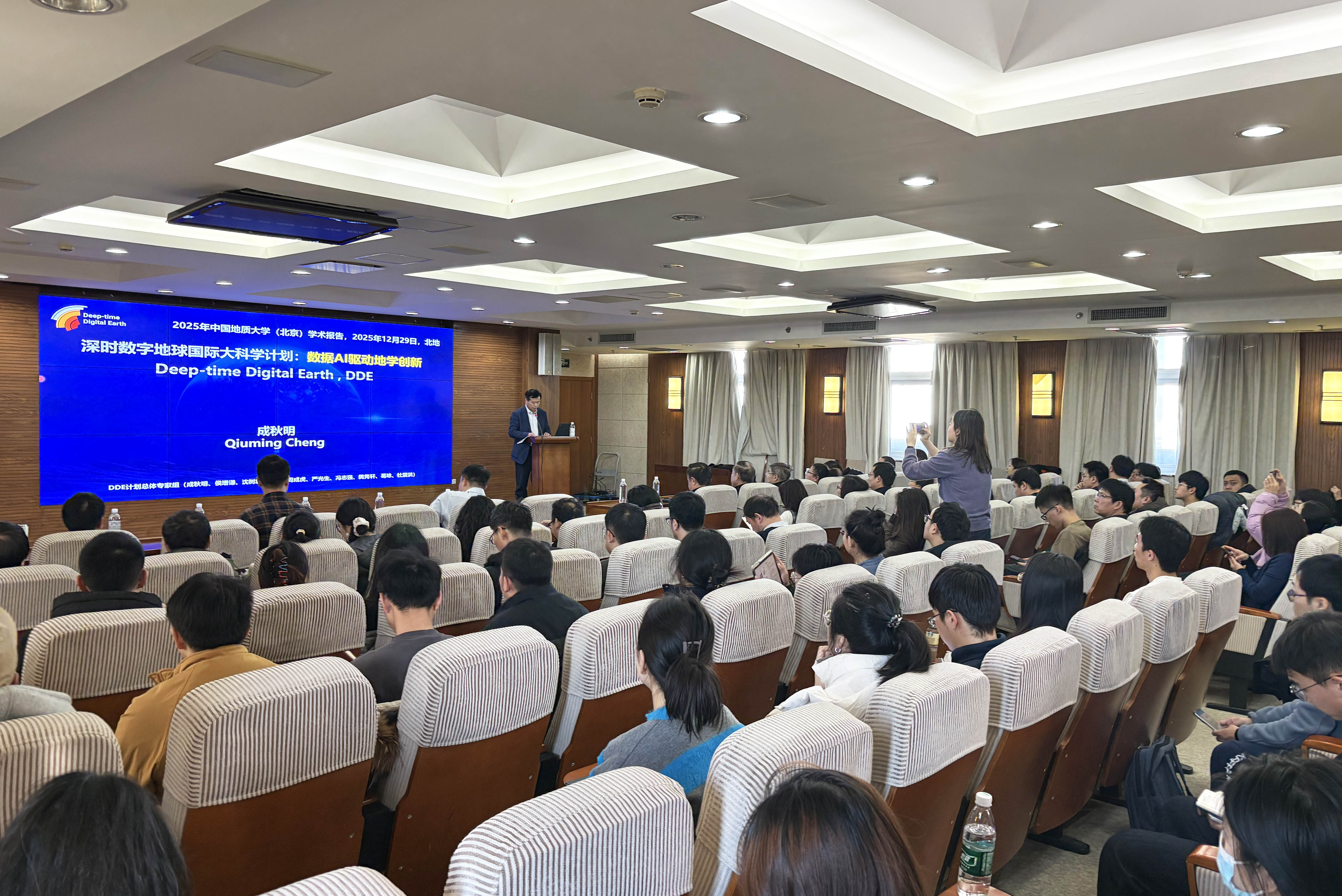 12月29日下午,应我校科技处、人事处、研究生院及教育部深时数字地球前沿科学中心联合邀请,中国科学院院士、深时数字地球国际大科学计划(DDE)总体专家组组长与执行委员会主席、我校教授成秋明为全校师生作题为《深时数字地球国际大科学计划:数据与AI驱动的地学创新》的学术前沿报告。报告会由副校长刘大锰主持。
